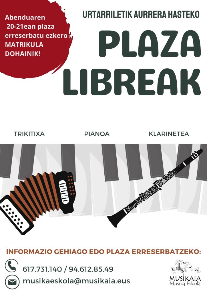 2021-12-20 TRIKITIXA, KLARINETE eta PIANO ikasgaietan azken plaza libreak eskeintzen ditugu. Urtarriletik aurrera hasteko aukera; bakarkako klase pertsonalizatuak, profesional baten gidaritzapean!