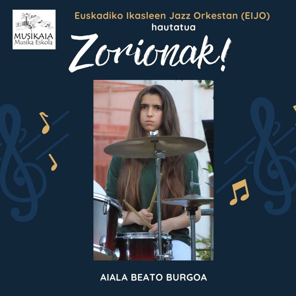 2021-12-21 Gure BATERIA-ko ikasle den AIALA BEATO BURGOA, EIJO (Euskadiko Ikasleen Jazz Orkesta)-ko probetara aurketu eta hautatua izan da. ZORIONAK zure lan guztiagatik! Esperientzia berri honetaz gozatu!