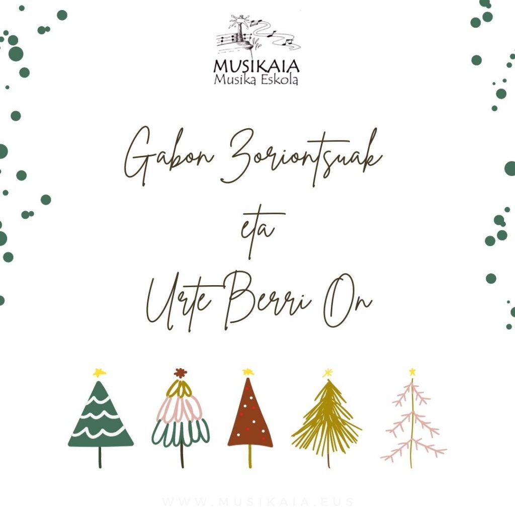 2021-12-22 Musikaia Musika Eskolatik GABON ZORIONTSUAK opa dizkizuegu! Gogoan izan URTARRILAK 7an bigarren ebaluazioa hasten dela.