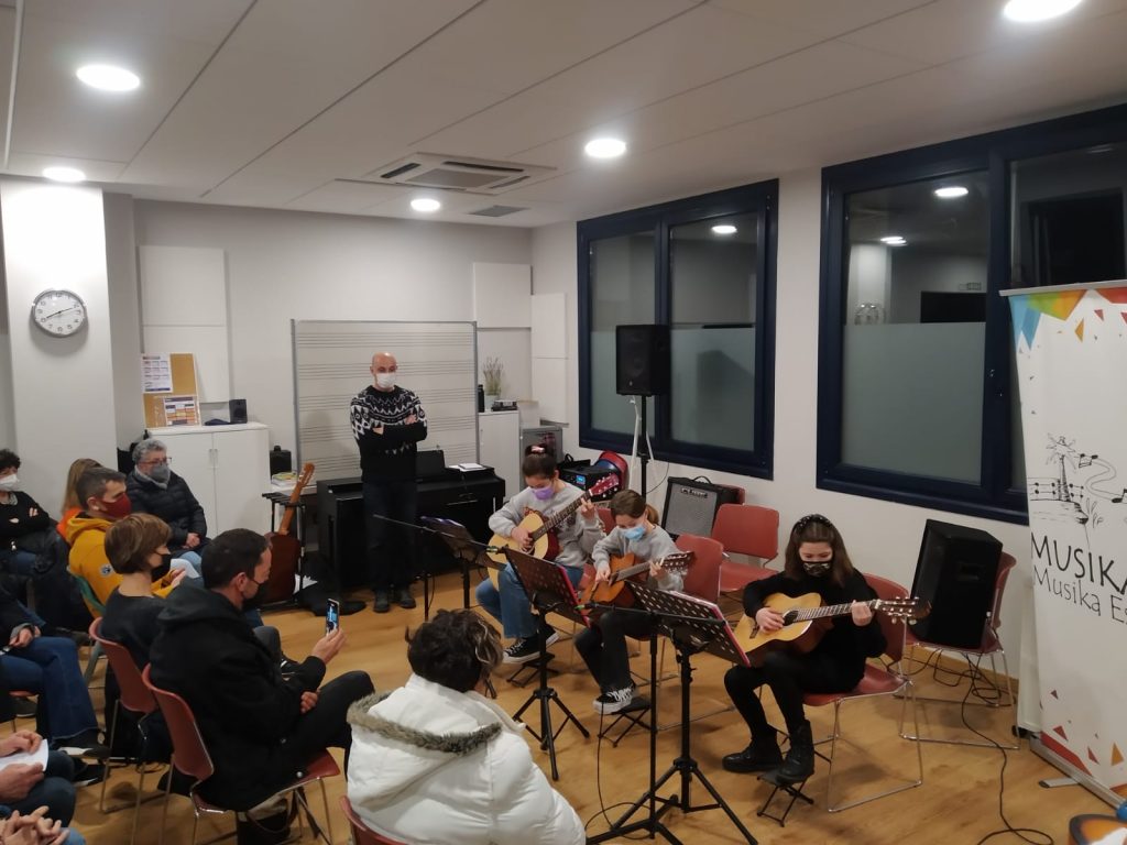 2022-02-11 Hona hemen gitarra kontzertuko argazki batzut. Gure irakasle den Aitorrek antolatu zuen eta ikasleek oso ondo jo zuten.