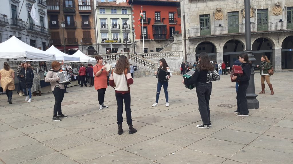 2022-03-21 Atzo Lekeitio eta inguruko emakume sortzaile eta ekintzaileen V. azoka ospatu zen. Azoka alaitzen, gure trikitixa eta panderoko ikasleak kalejiran aritu ziren goizean zehar.