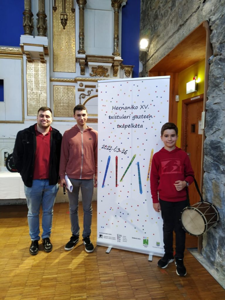 2022-03-28 Zapatuan Musikaiako ikasle diren Bingen eta Ekain, Hernaniko XV. Txistulari gazteen txapelketan parte hartu zuten. Esan digutenez, ederto baten jo zuten, zorionak bioi!