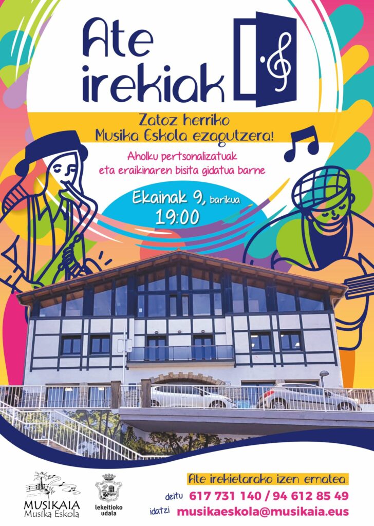 🎼 Herriko Musika Eskola ezagutu nahi duzu? Zatoz, MAIATZAK 28 ZAPATU GOIZEAN eskeiniko ditugun ATE IREKIETARA. 11:00etan euskaraz eta 12:15etan gazteleraz 📊 Musika Eskolen legedia, organigrama eta antolakuntza 🖇 Musikaiaren eskaintza 🏨 Eraikinaren bisita gidatua 🤝 Aholku pertsonalizatuak 📲 Informazio gehiagorako: 617 731 140/ musikaeskola@musikaia.eus ANIMATU ZAITEZ!!!