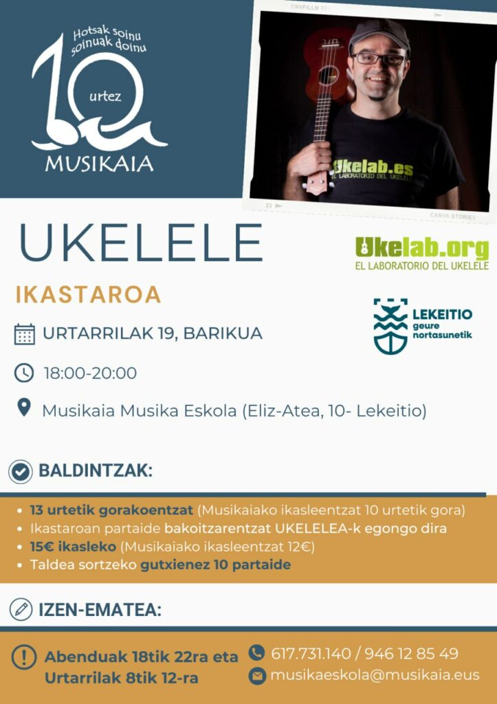 🔊 Hemen dugu berriz @ukelab -en eskutik, UKELELE IKASTAROA! Noiz??? URTARRILAK 19, barikuan, 18.00etatik 20.00etara 🗒🖊Interesa baduzu ABENDUAK 18tik 22ra eta URTARRILAK 8tik 12ra zure izena eman dezakezu gure emailera idatziz (musikaeskola@musikaia.eus) edo musika eskolara deituz (617 731 140 edo 946 12 85 49). 🎶Musikaiako ikasleak ez direnak 13 urtetik gora apuntatu daitezke 15€ren truke, […]