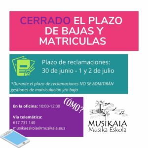 Con toda esa información en mano se abrirá el plazo de reclamaciones del 30 de junio al 2 de julio. En dichas fechas NO SE GESTIONARÁN nuevas altas o bajas.