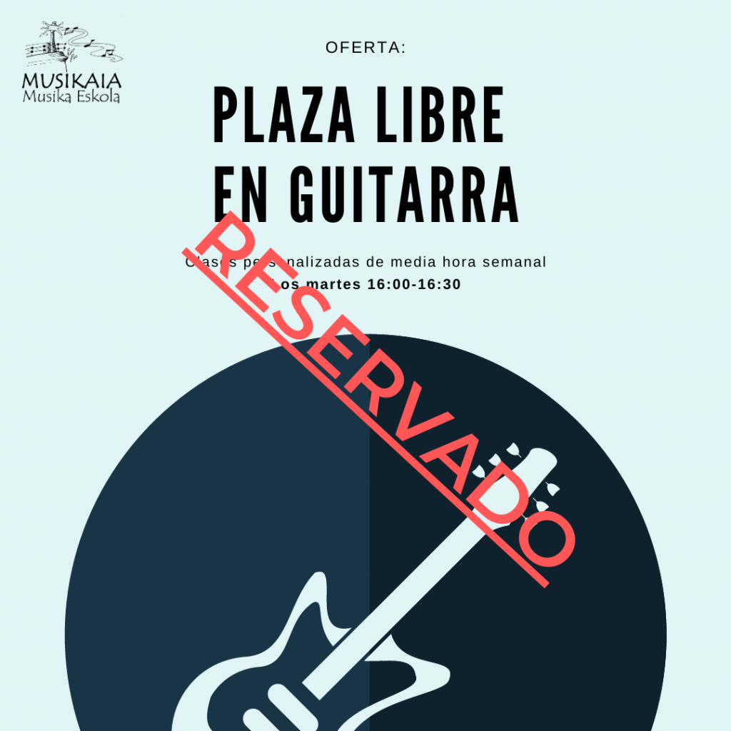 12-02-2021 Disponemos de una plaza libre en GUITARRA. Son clases personalizadas, destinadas a cualquier edad. Media hora semanal: los martes de 16:00 a 16:30. Para más información: 617.731.140 / musikaeskola@musikaia.eus