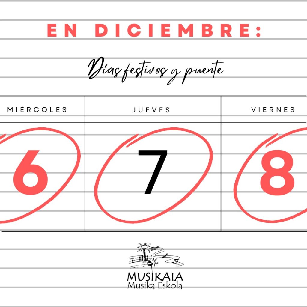 🗓 RECORDATORIO DE CALENDARIO Los días 6-7-8 de DICIEMBRE son festivos en nuestro calendario, por lo que esos días no habrá clases lectivas.