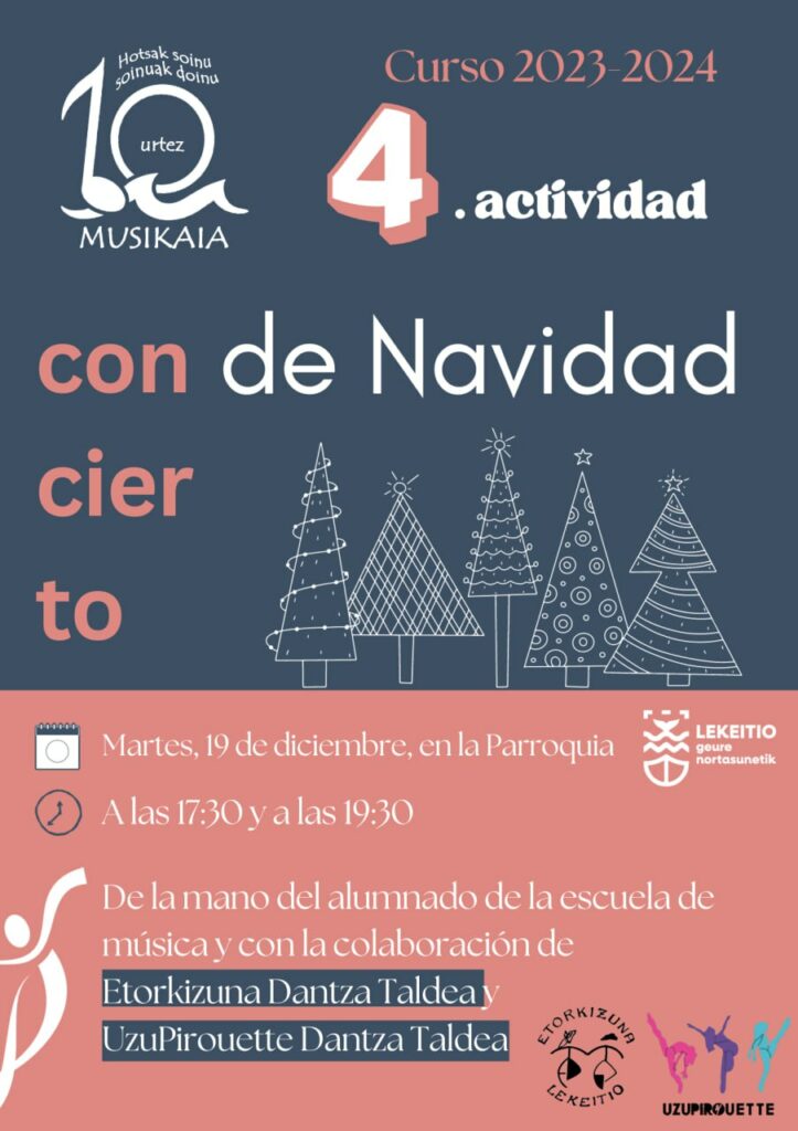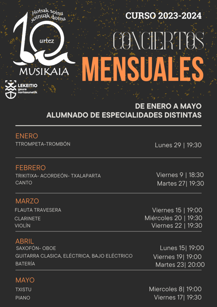 El sábado 24 de febrero se celebrará en Zarautz el I Encuentro de Piano. Este encuentro, que se clasificará en tres niveles y modalidades, contará con la participación de alumnos de piano de las escuelas de música. Desde la escuela de música de Lekeitio, tres alumnos se han animado a participar.📍 Sala Modelo (Zarautz)🕘 16.00-19.30🎟 […]