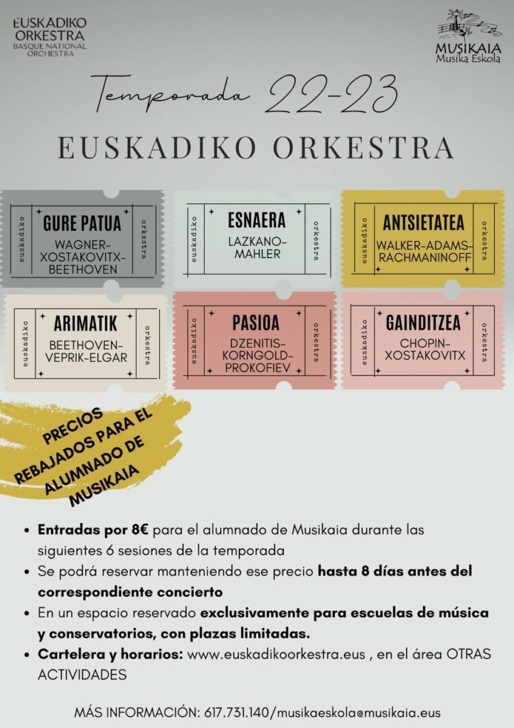 Precios reducidos para los alumnos de Musikaia. ¡Adentrarte en el mundo de la música clásica y amplía tu conocimiento musical! Para más información, contacta con nosotr@s.