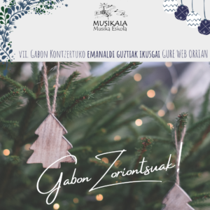 Gabon zoriontsuak eta urte berri ona opa dizuegu Musikaia osatzen dugun taldearen izenean.