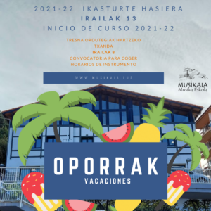 Uztailak 2-an Musika Eskolak ateak itxiko ditu oporrak hartzeko!