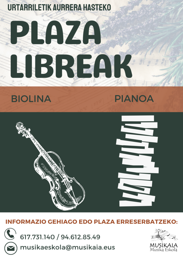 Plaza libre bi geratu zaizkigu ikasgai hauetan: BIOLINA eta PIANOA.